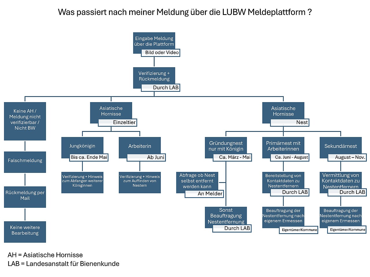 Die Grafik (Quelle https://bienenkunde.uni-hohenheim.de/vespavelutina-meldeplattform) zeigt, dass die Beauftragung der Nestentfernung
